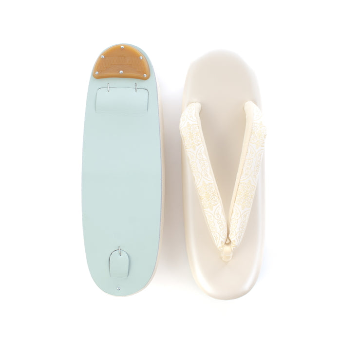 上品で華やかな色合いの草履はワンランク上の装いを演出します。結婚式やお茶会などの晴れやかな場はもちろん、格式ある場面でのご着用にふさわしい逸品です。