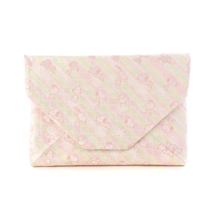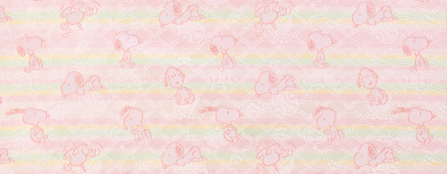 We have made a textile design of Snoopy with thacombination of the "seigaiha"(wave pattern) and the "collection of treasures", both of which are the Japanese traditional patterns.