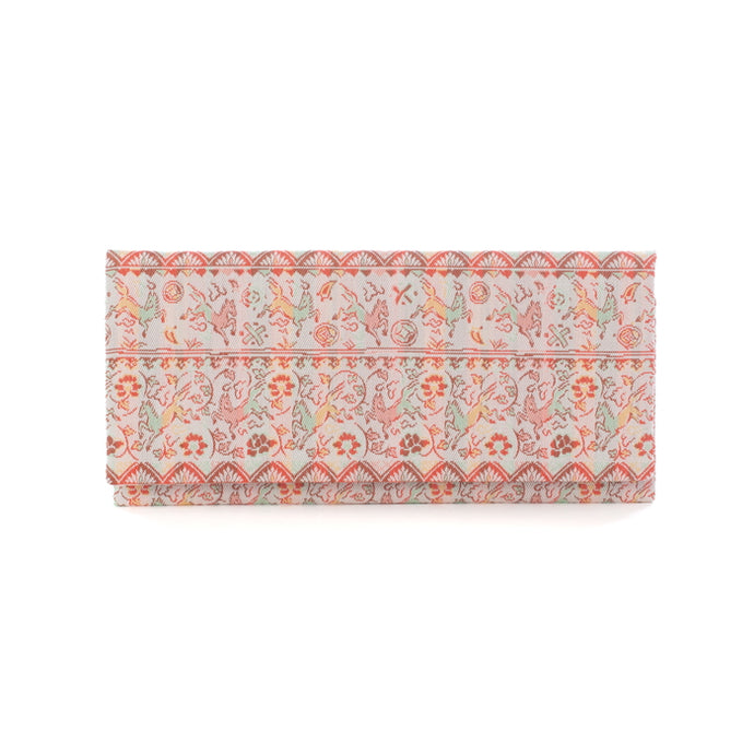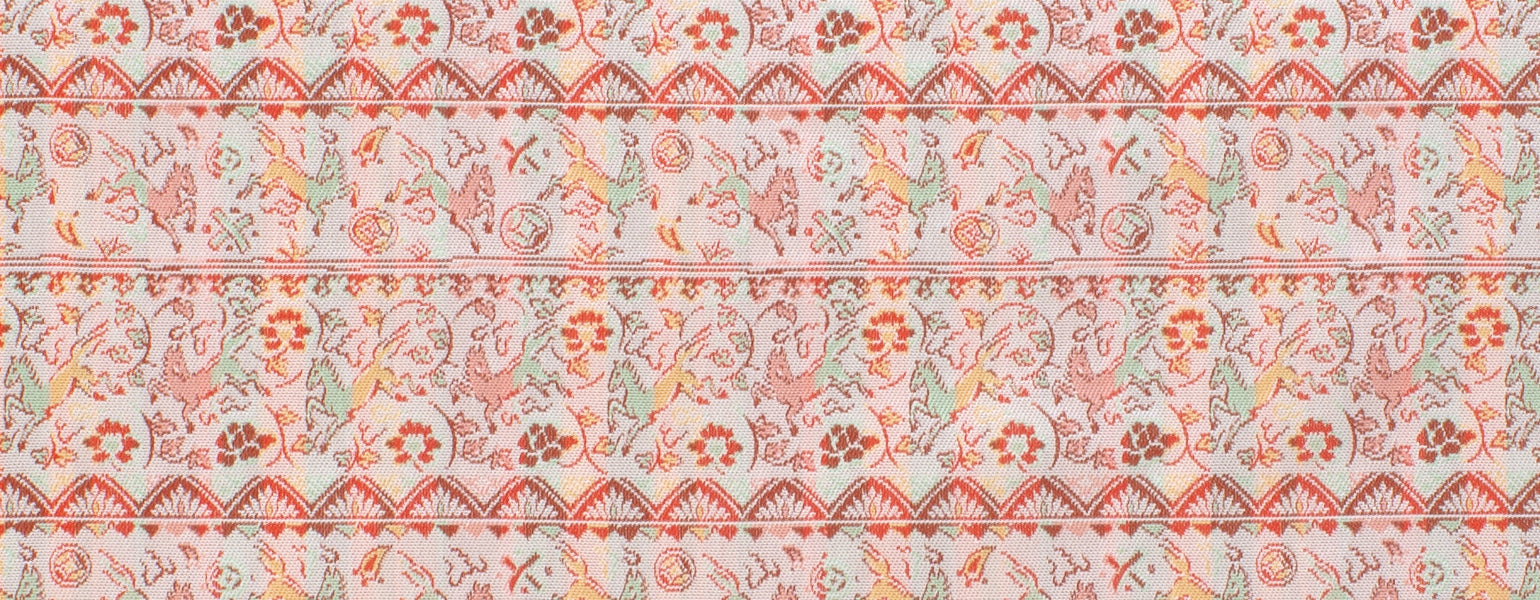 We have woven into warp-patterned brocade with our exquisite weaving tschnique, the brushwork of the galloping horses and the charm of the "AKAE" of the Ming Dynasty.