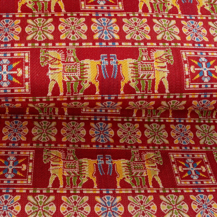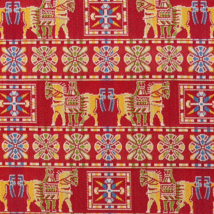 The design of this brocade is modeled after the design of the extant world oldest carpet, considered to have made in the 5th century to the 4th century, B.C., excavated in the permafrost of the Pazyryk burials in the East Altai Mountains, East-Central Asia.