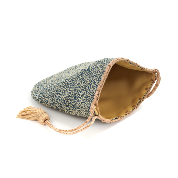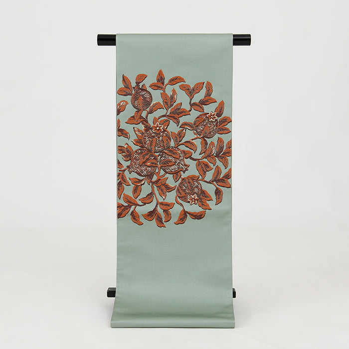 The original brocade was made in bluish yellow and light indigo colors, but we have used our original color and woven into warp-patterned brocade with our exquisite technique.