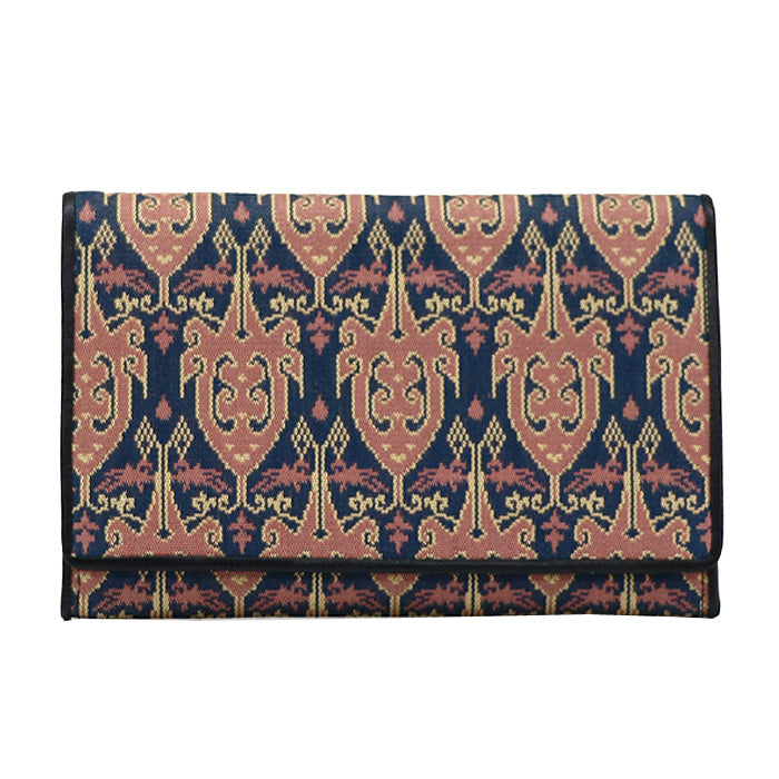 The brocade here was reproduced and adapted from a warp-patterned textile of H'ang times excavated from Noin-Ula, near Lake Baikal.