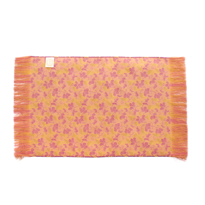 We have arranged this pattern of the mice vividly playing in the matured bunches of the grapes and the vines, symbolizing the good omen of the bountiful harvest, the prosperity of descendants and the great wealth. We have woven into warp-patterned brocade with our exquisite technique.