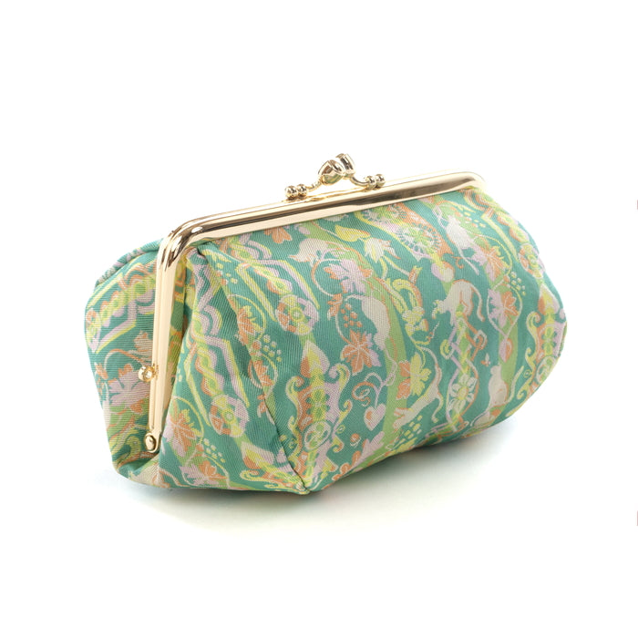 The opening and closing part of the pouch is a "Gamaguchi", which opens wide and makes it easy to find what is inside. It is lightweight and small, but has a gusset for excellent storage capacity. It is very convenient for storing cosmetic products and other small items.