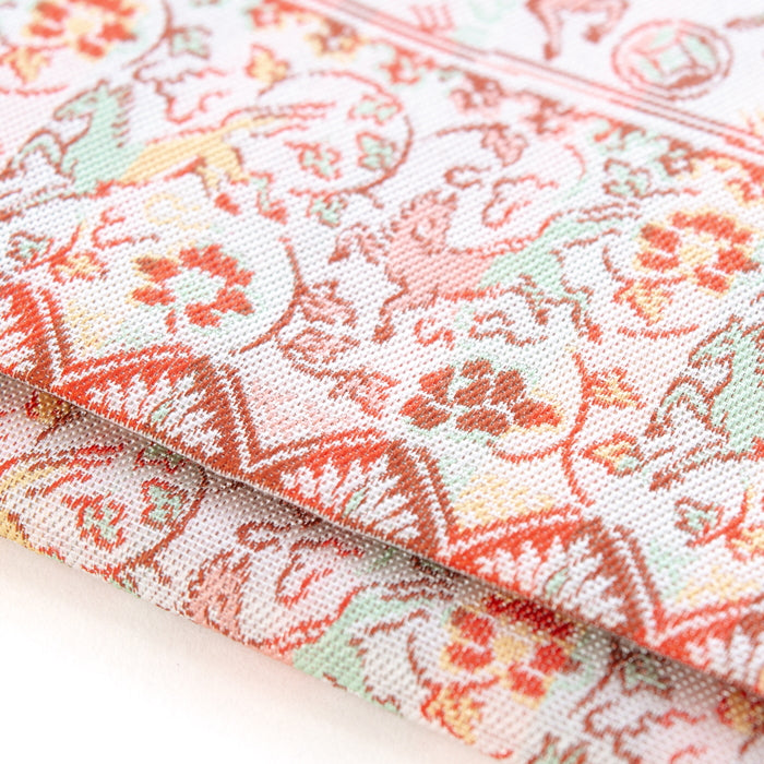 We have woven into warp-patterned brocade with our exquisite weaving tschnique, the brushwork of the galloping horses and the charm of the "AKAE" of the Ming Dynasty.