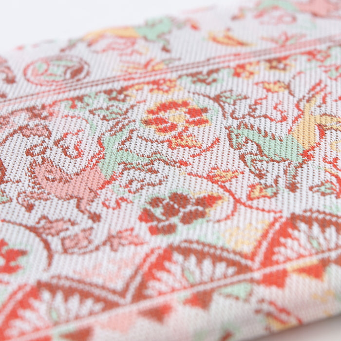 We have woven into warp-patterned brocade with our exquisite weaving tschnique, the brushwork of the galloping horses and the charm of the "AKAE" of the Ming Dynasty.