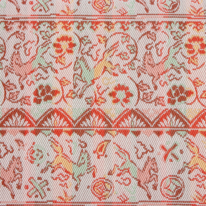 We have woven into warp-patterned brocade with our exquisite weaving tschnique, the brushwork of the galloping horses and the charm of the "AKAE" of the Ming Dynasty.
