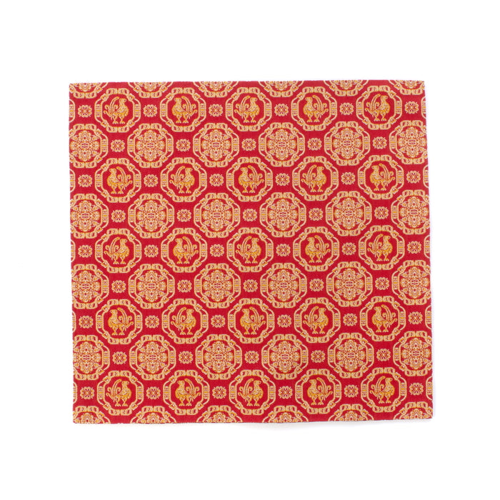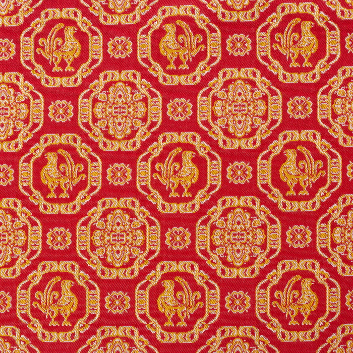 The design of this brocade is modeled after the pattern of the Persian fabrics made in the 6th-7th century, AD which consists of a cock in a medallion surrounded by a brilliant flower crest deployed in the geometric pattern.