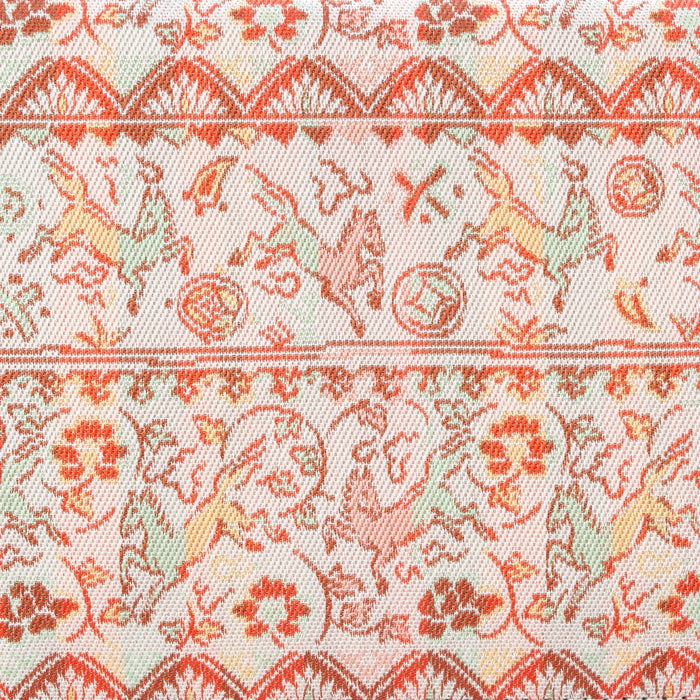 We have woven into warp-patterned brocade with our exquisite weaving tschnique, the brushwork of the galloping horses and the charm of the "AKAE" of the Ming Dynasty.