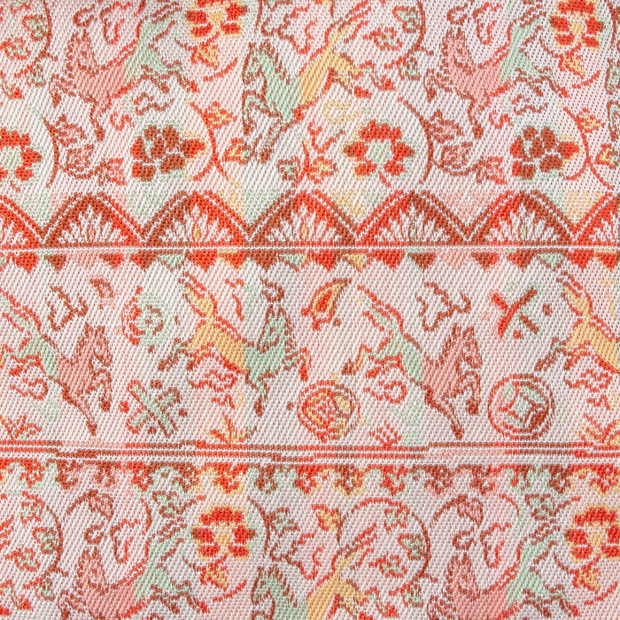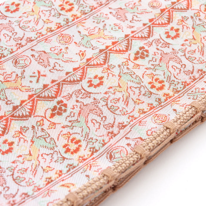 We have woven into warp-patterned brocade with our exquisite weaving tschnique, the brushwork of the galloping horses and the charm of the "AKAE" of the Ming Dynasty.
