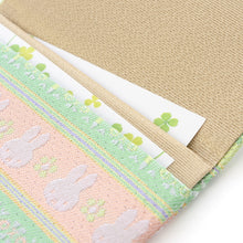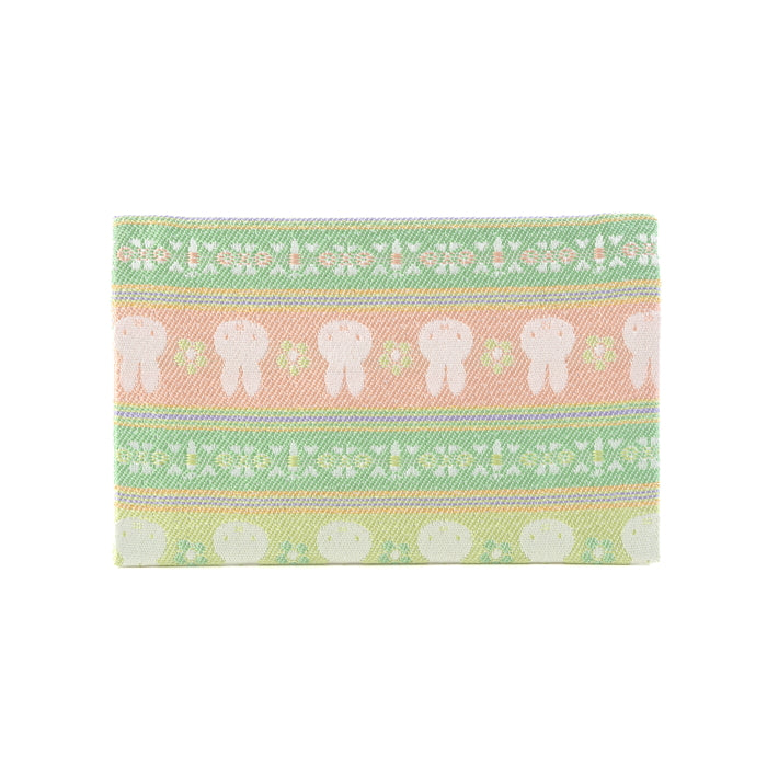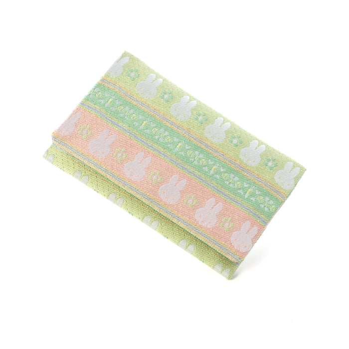 We have woven lovely miffy with a Japan's traditional stripe-pattern "dan-mon". Here, the thick lines symbolize parents, and the thin lines symbolize children. The stripes drawn with thick lines outside and thin lines inside "parents guard children". The stripes drawn with thin lines outside and thick lines inside depict "devotion to parents" like children admire parents.