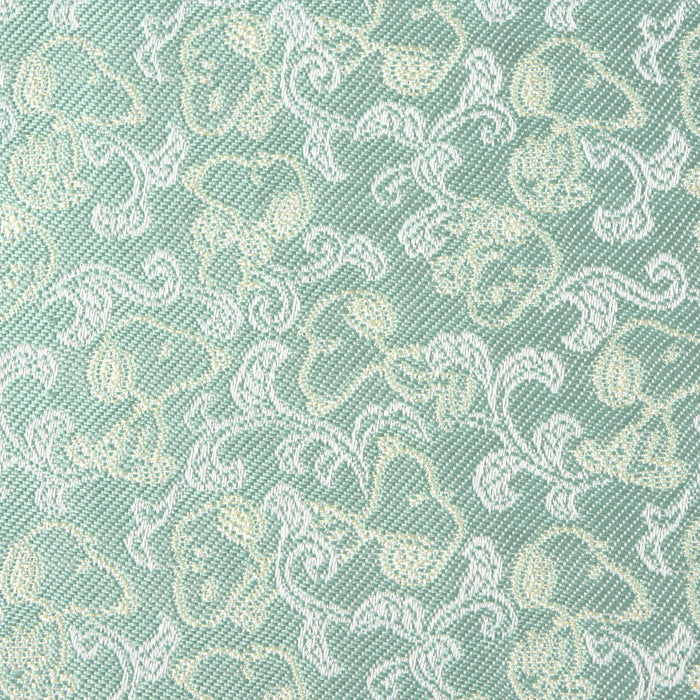 Here, by weaving the outline of the arabesque pattern in a thin yarn to bring out the beauty of its sensitiveness, and in between, Snoopy motif in a thinner yarn so as to look like a "hidden picture" for fun. We have woven the lustrous silk-fabric to bring the shade and shadow effect so that you may feel an amazement and freshness. Here, we made a new textile design of Snoopy.