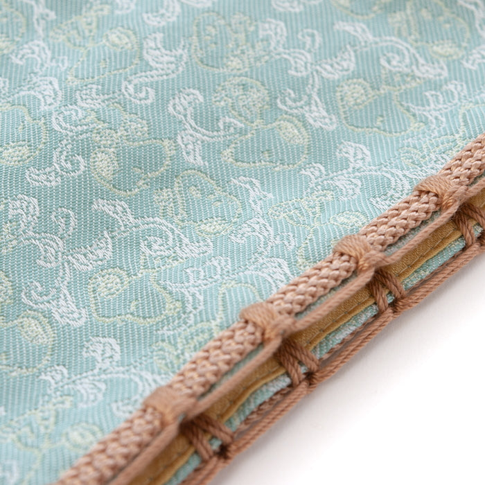 Here, by weaving the outline of the arabesque pattern in a thin yarn to bring out the beauty of its sensitiveness, and in between, Snoopy motif in a thinner yarn so as to look like a "hidden picture" for fun. We have woven the lustrous silk-fabric to bring the shade and shadow effect so that you may feel an amazement and freshness. Here, we made a new textile design of Snoopy.