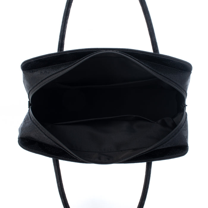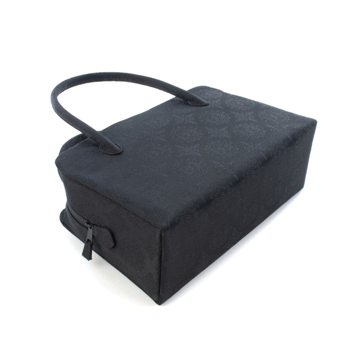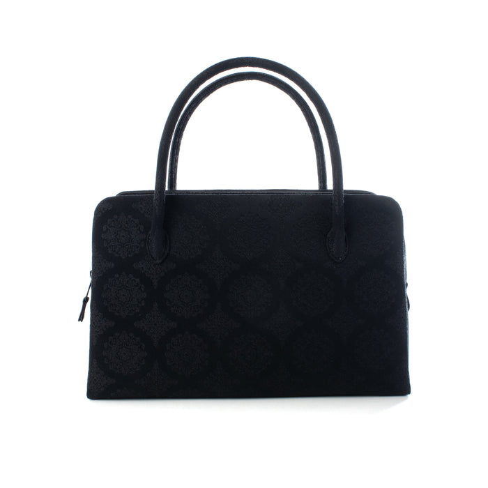 和装に合うハンドバッグにはオーソドックスで収納力もあるボストン型のハンドバッグが人気です。ご葬儀や法事など、ブラックフォーマルの場で安心してお使いいただける逸品です。