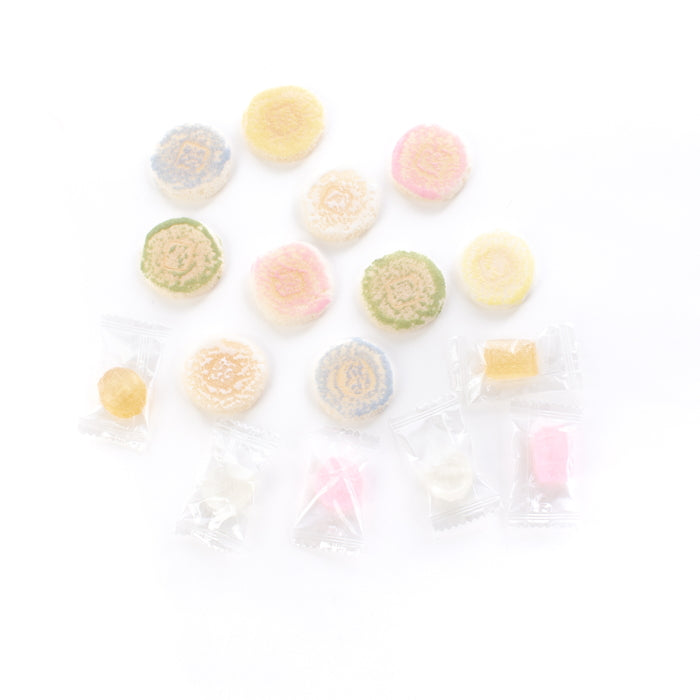 京ふうせん:餅米(国産)、砂糖(国内製造)、着色料(赤105、赤3、黄4、青1)