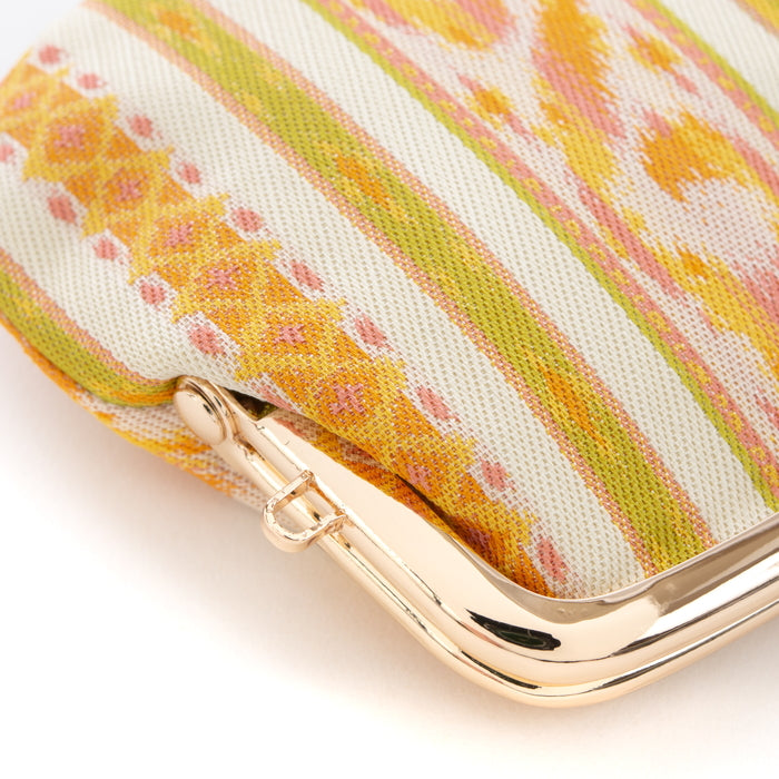 この経錦は東南アジアの織物に範を求め、経錦ならではの趣ある柄とし、配色に創意を加え彩り豊かに織り成しました。