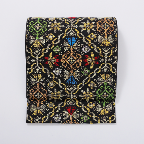 このような印金更紗にみられる独特の趣を生かしながらも、繊細華麗に経錦の技法で織り成しました。