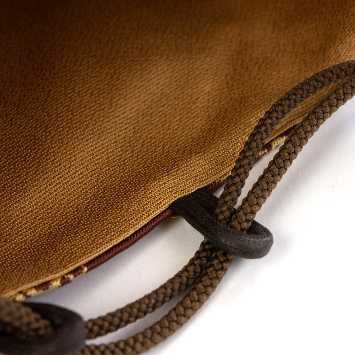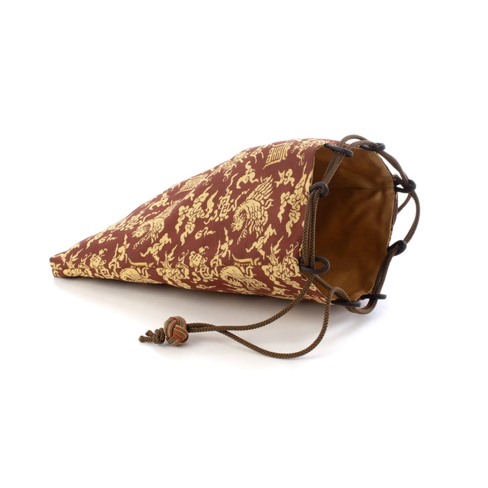 信玄袋は裂製のマチなし手提で、口を紐で締める巾着袋です。明治中期以降から流行し、和服を着た際に小物入れなどに使うだけでなく、最近では洋装カジュアルに用いてコーディネートしてみるのもおすすめです。従来の発想にとらわれない、多様な使い方が出来るアイテムです。