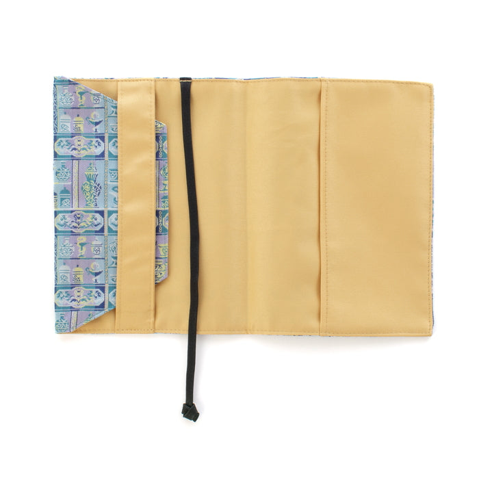 ブックカバーという普遍的なアイテムに龍村裂の伝統的な定番柄でアプローチをしています。お気に入りの本にさらに愛着がわきます。柄の持つイメージにとらわれる事なく、男女問わずどのような柄でもお選びお使い頂けます。人気の定番柄、現代的な柄、いずれも伝統とトレンドを感じ取れる商品です。ブックカバーというちょっとした小物であるからこそ、遊び心で普段とは少し違う柄を選んで冒険するのも楽しいものです。
