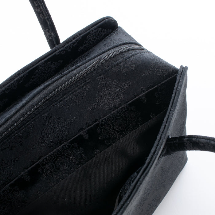 全面に龍村裂を使用し、上品で高級感のあるバッグはワンランク上の装いを演出します。開口部が広いので荷物の出し入れがしやすく、ファスナーで完全に閉まりますので、持ち姿も美しく見せます。マチもしっかりとありますので、金封袋、数珠、化粧ポーチ、携帯電話、長札入、ハンカチなどの必需品もしっかり収納できます。