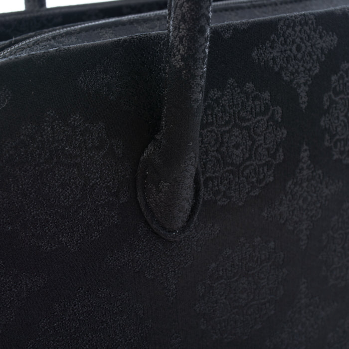 和装に合うハンドバッグにはオーソドックスで収納力もあるボストン型のハンドバッグが人気です。ご葬儀や法事など、ブラックフォーマルの場で安心してお使いいただける逸品です。