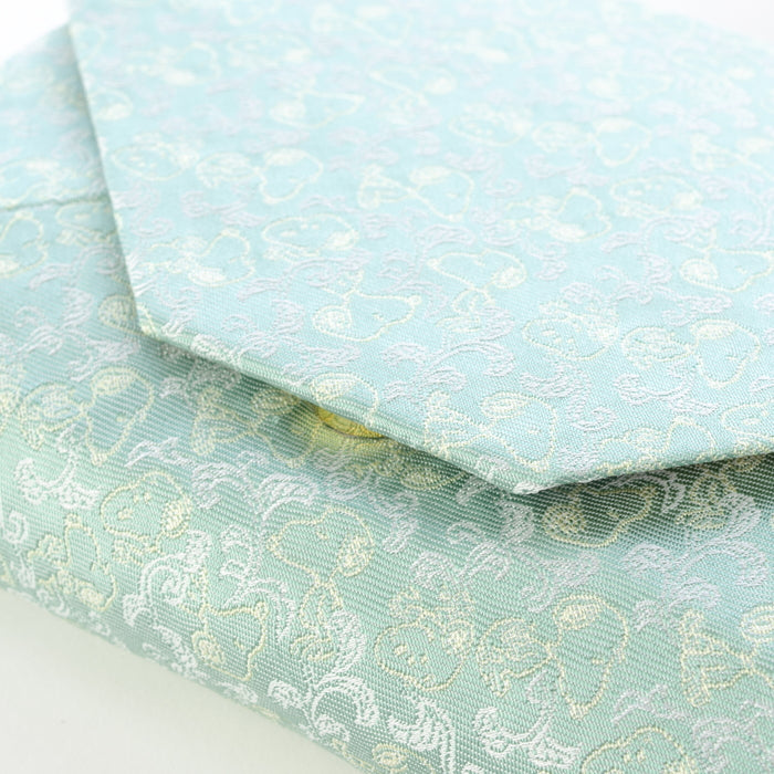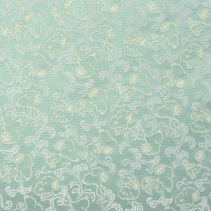 絹織物ならではの光沢が生み出す陰影がデザインに動きを与え、スヌーピーをデザインした新しい織物が生まれました。
