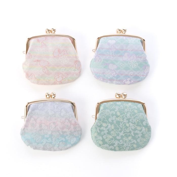 日本の伝統的な文様の中にスヌーピーが見え隠れするような動きのあるデザインに仕上がっており、華やかながら落ち着いた色味と、絹ならではの光沢とやさしい風合いが特徴です。