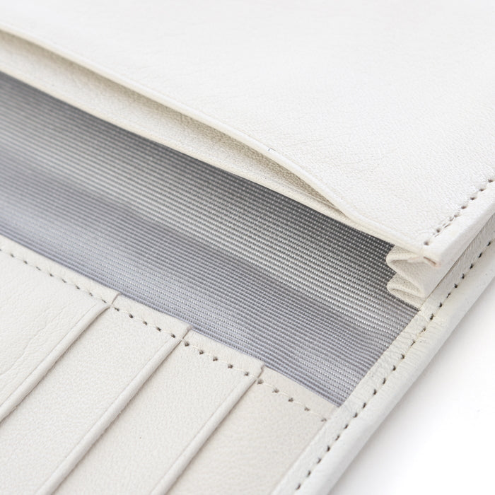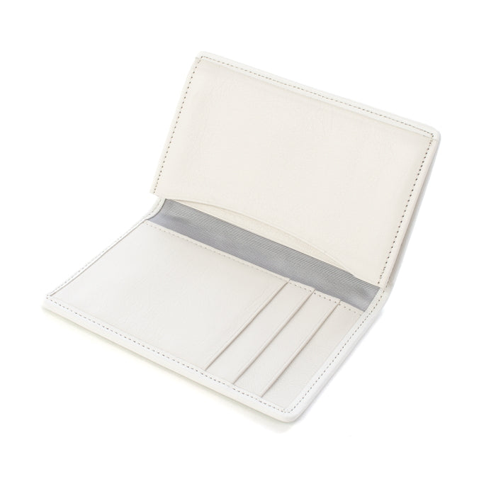 カード収納が3ヶ所、ポケットが2ヶ所付属しています。内側には牛革を使用し、使用による経年変化の味わいが期待できます。カード入れとしての使用だけでなく、ビジネスシーンでは名刺入れとしても便利で、どのようなお召し物であっても馴染む美しさです。