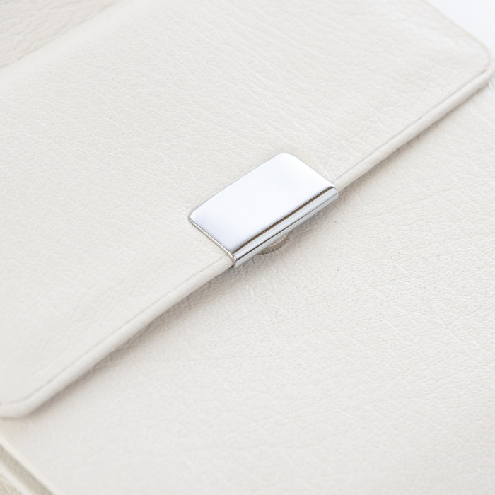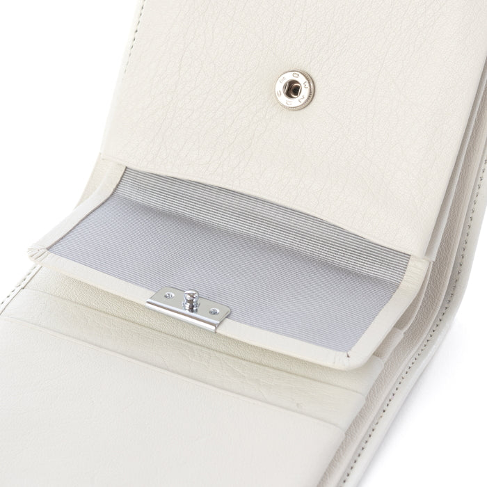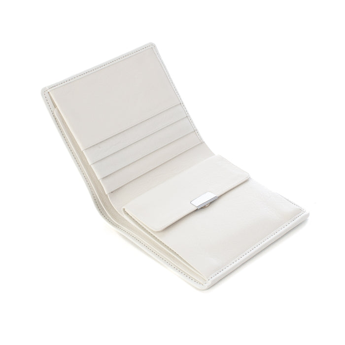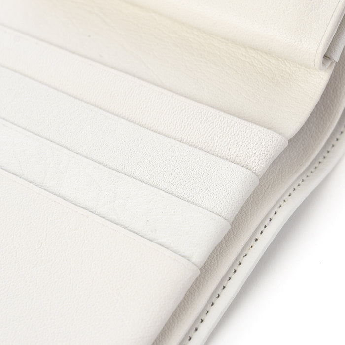 二折札入はそのスマートな形状、利便性からファンが多いアイテム。擦れやすい角や裏地に軽くてしなやかな牛革を使用してます。開閉しやすいスナップ止めの小銭入れが1つ、札入部位が2か所あります。またカード入れが4つ付いていますので、必要最低限のカードですっきりとお使いいただけます。時を経て自分好みになじんでいく小物は、長くご愛用いただく事でその輝きをより増していきます。